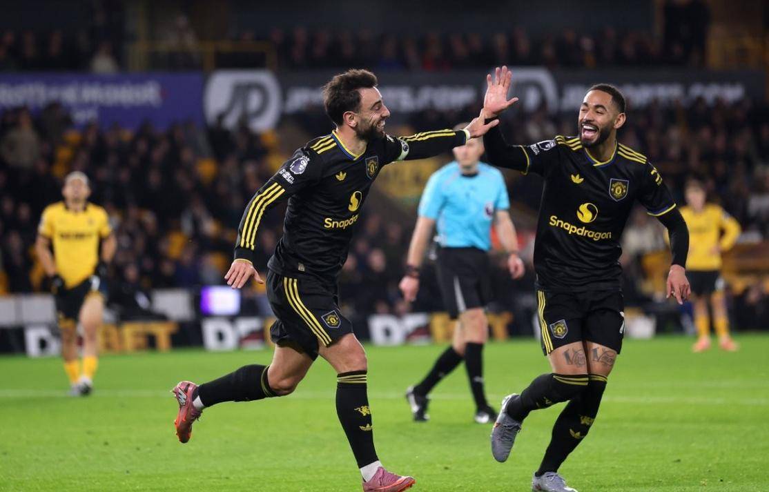 追平切尔西升英超第6!B费2射1传一战造2大神迹,曼联4-1复仇狼队